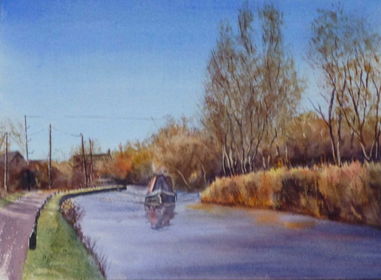 An unframed, original watercolour painting, The Canal at Down Holland Cross, on paper, 35x25cm.